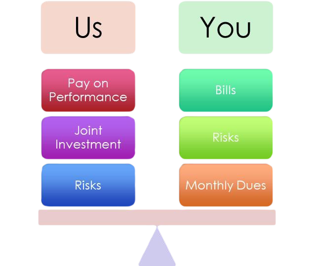 Lets work on a 60%/40% payment plan. 60% of your monthly bill upfront 40% of your bill on a cycle based on your completed deals. As partners- lets negotiate, net profit deals sharing